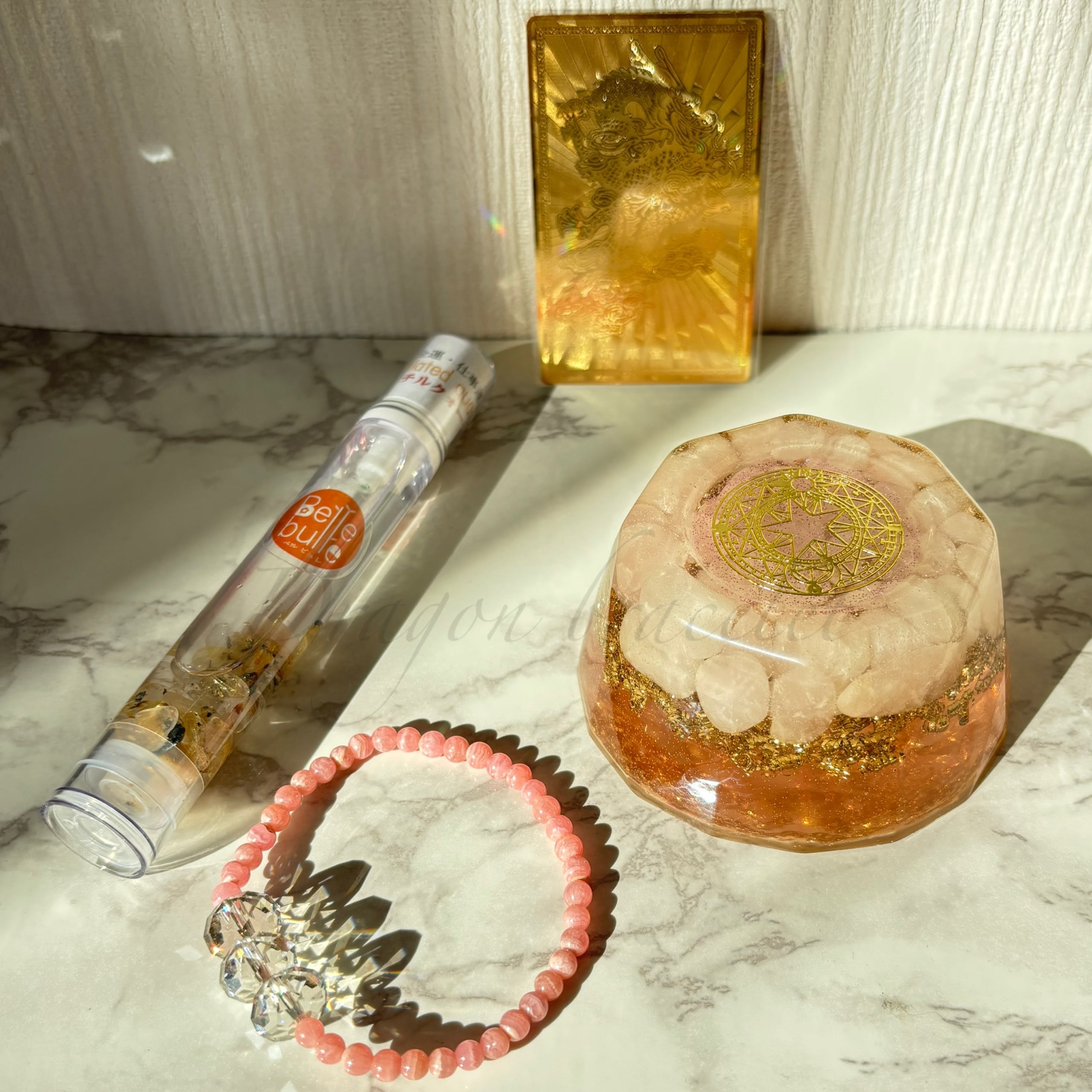素材 ローズクォーツ、金属くず、ラメ エナジーシール(ホロスコープ)