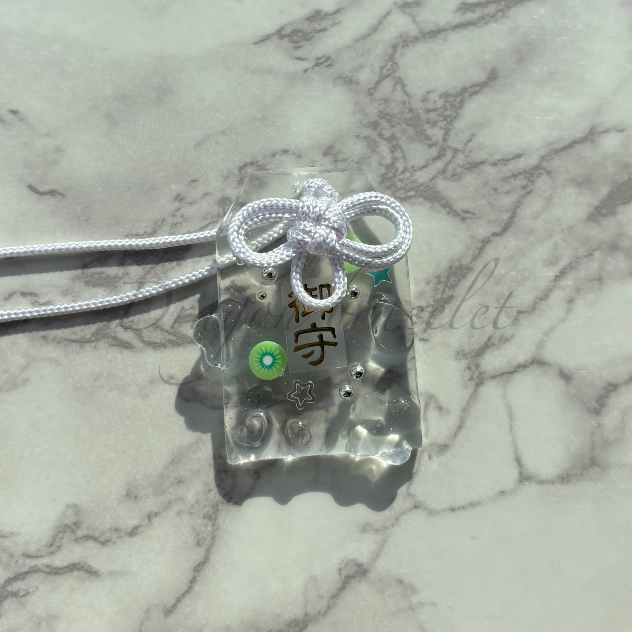 「御守」の文字と小さなモチーフを閉じ込めた