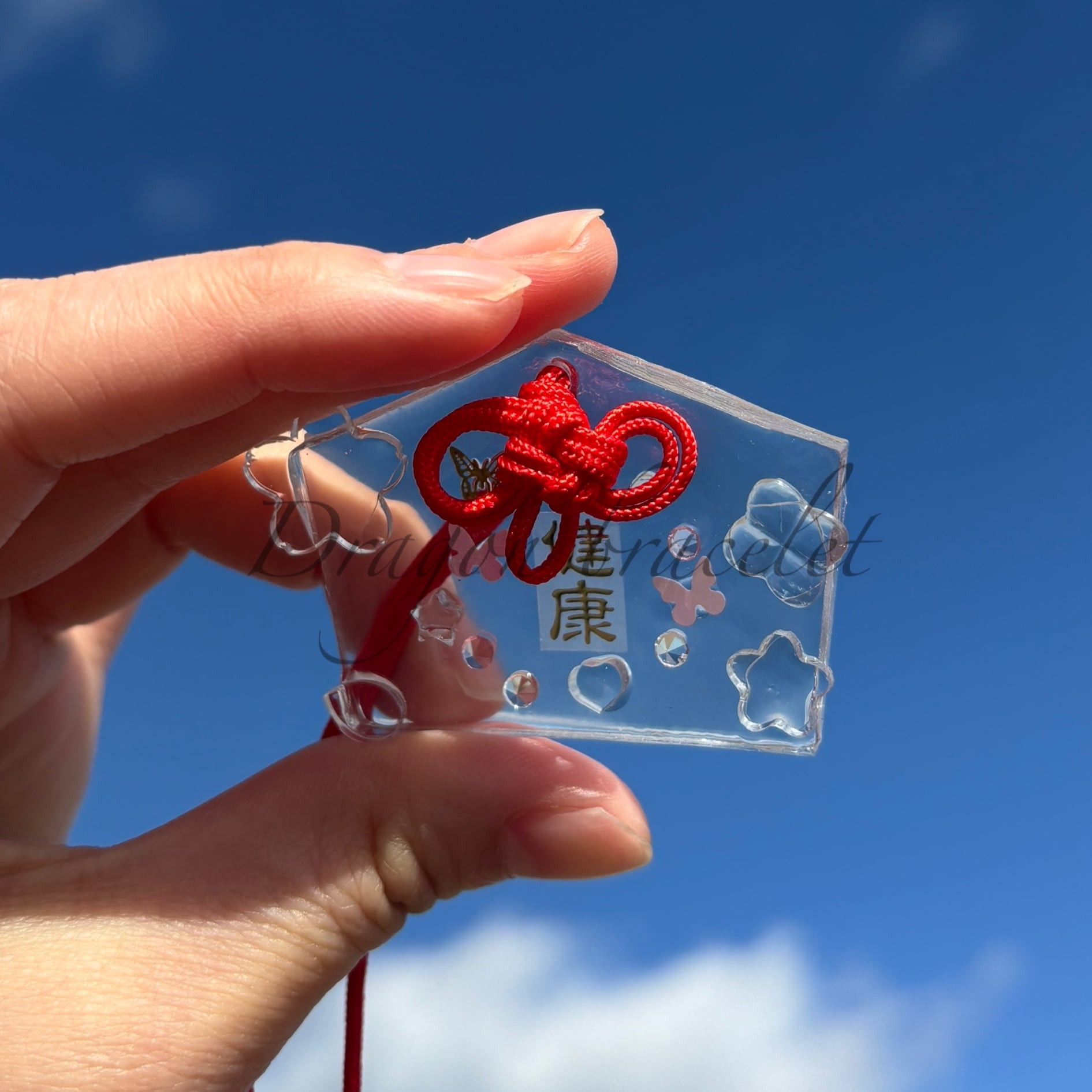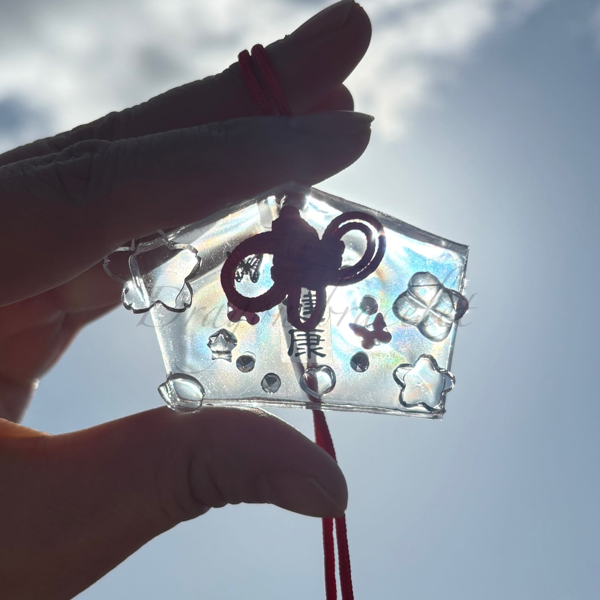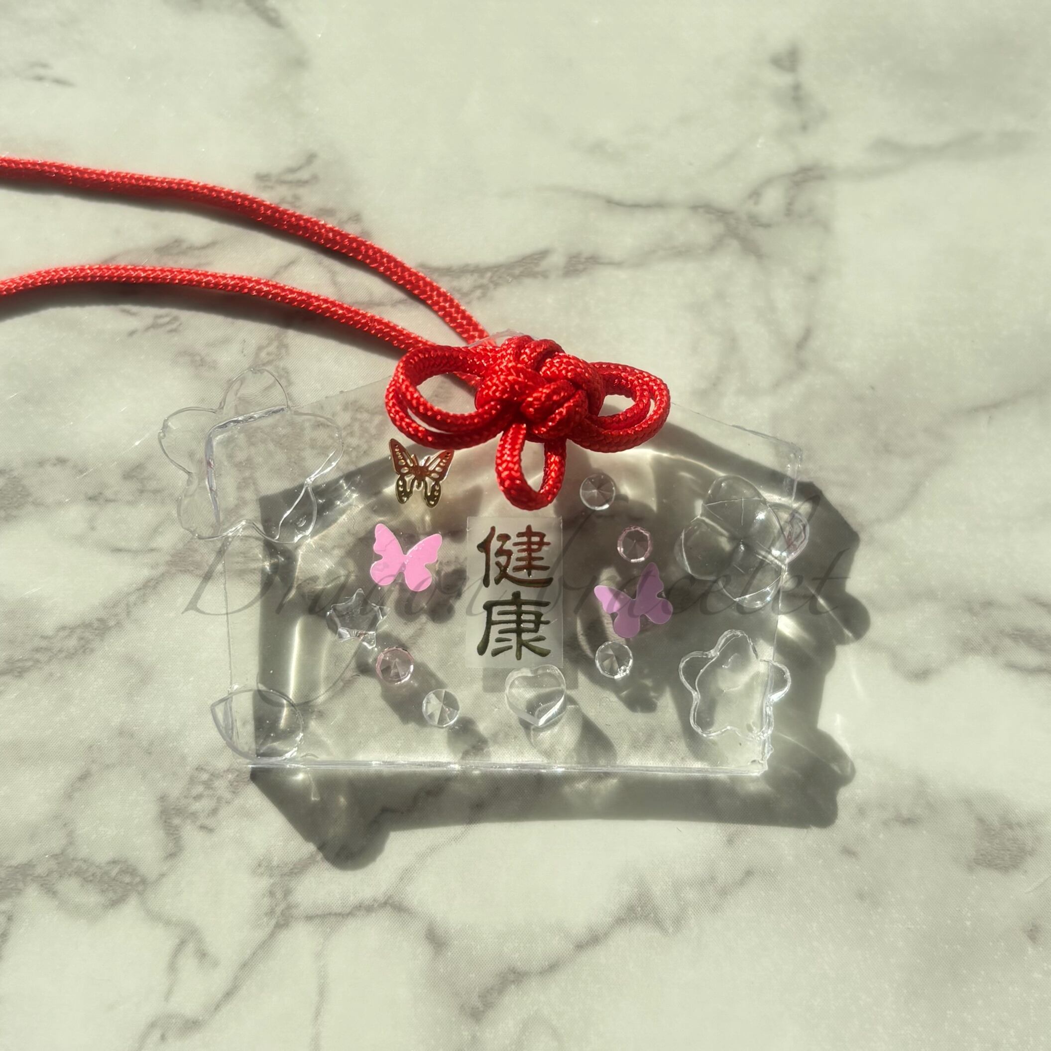透明感のあるレジン製のお守りキーホルダーです。