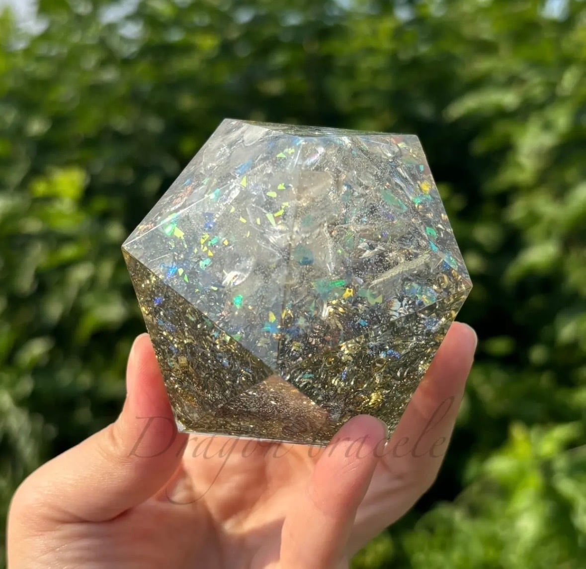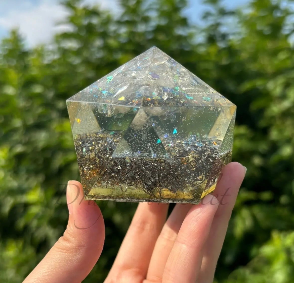 水晶さざれ石・ラメ・金属線を内包したオルゴナイトは、置くだけで空間のエネルギーをやさしく整えてくれます。