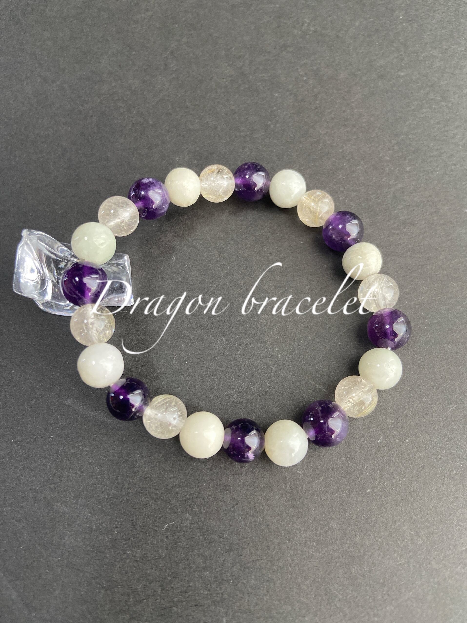 夢の実現、金運、愛の守護石 8mm本翡翠 8mmルチルクォーツ 8mmアメジスト