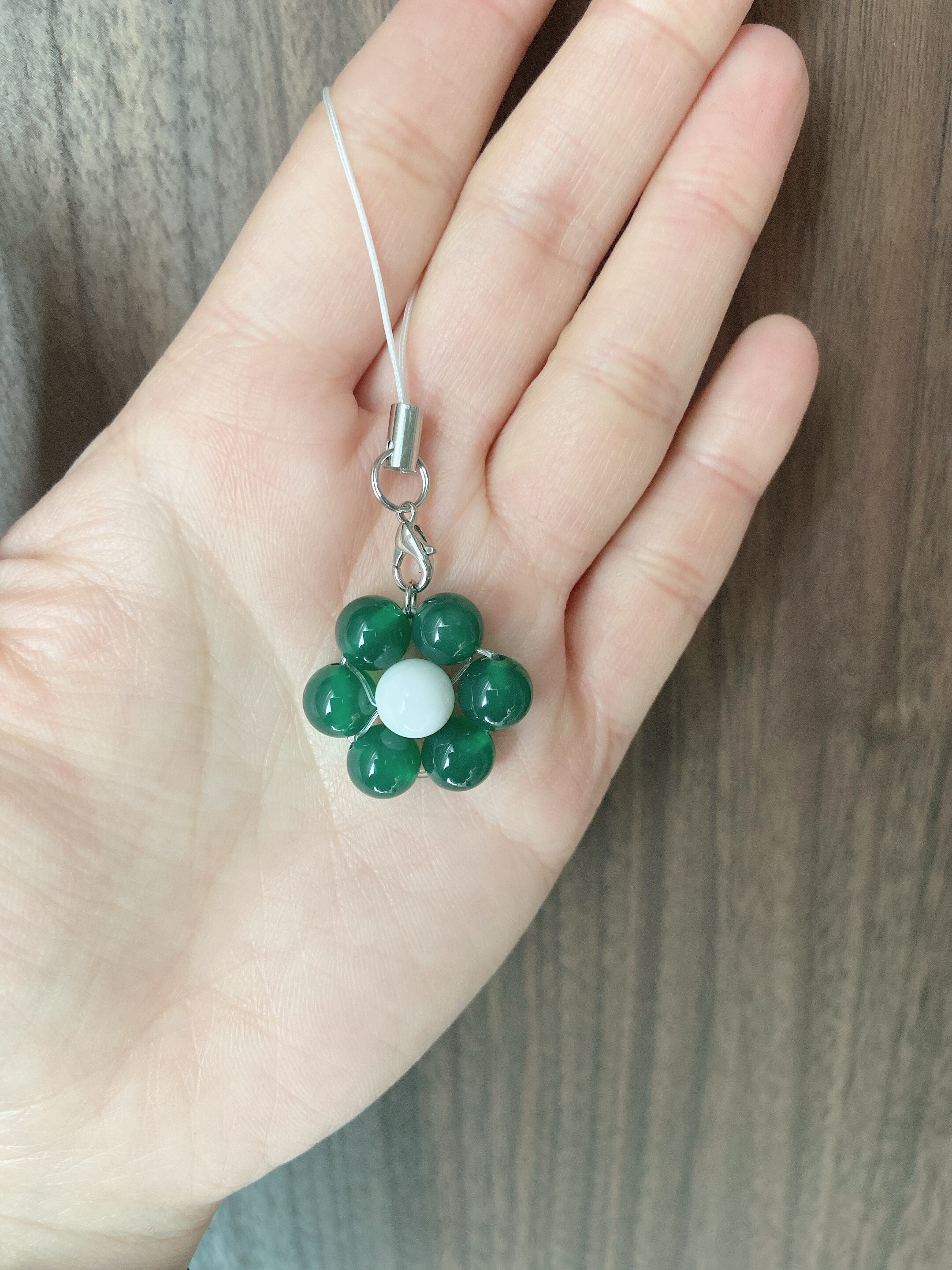 限定販売 パワーストーンストラップ花 グリーンメノウ×ホワイトオニキス