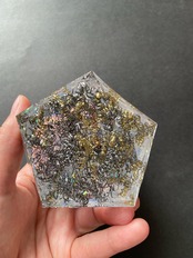 澄んだ光を宿す水晶をたっぷりと閉じ込めたオルゴナイト。