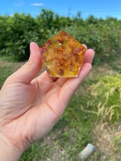 黄金色に輝く水晶を閉じ込めたオルゴナイト。
