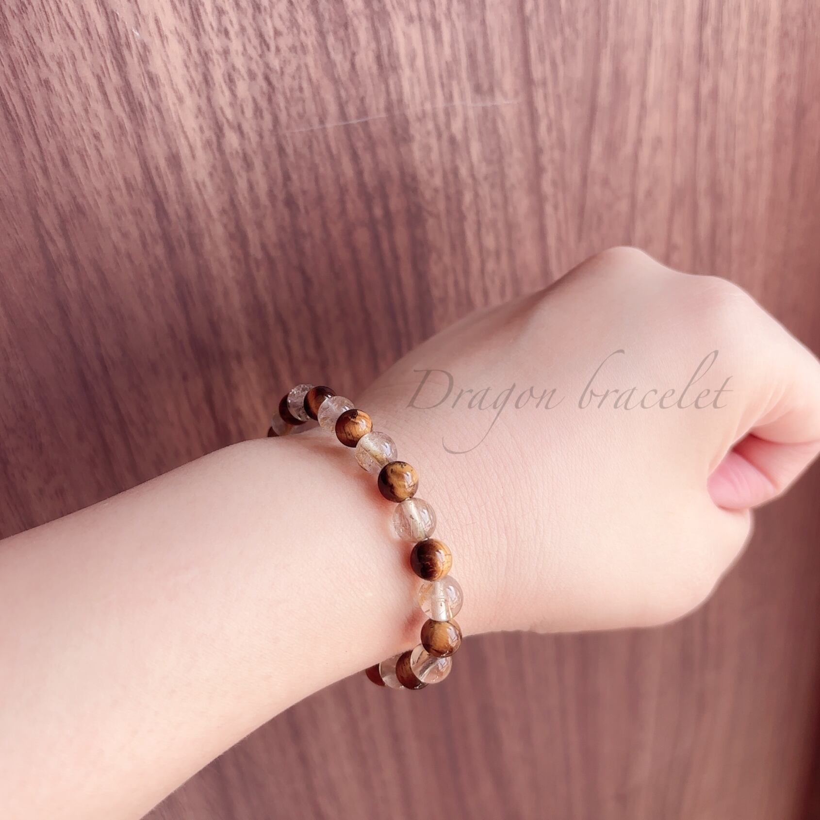 黄金に輝くルチルクォーツと、力強いタイガーアイを組み合わせたブレスレット。