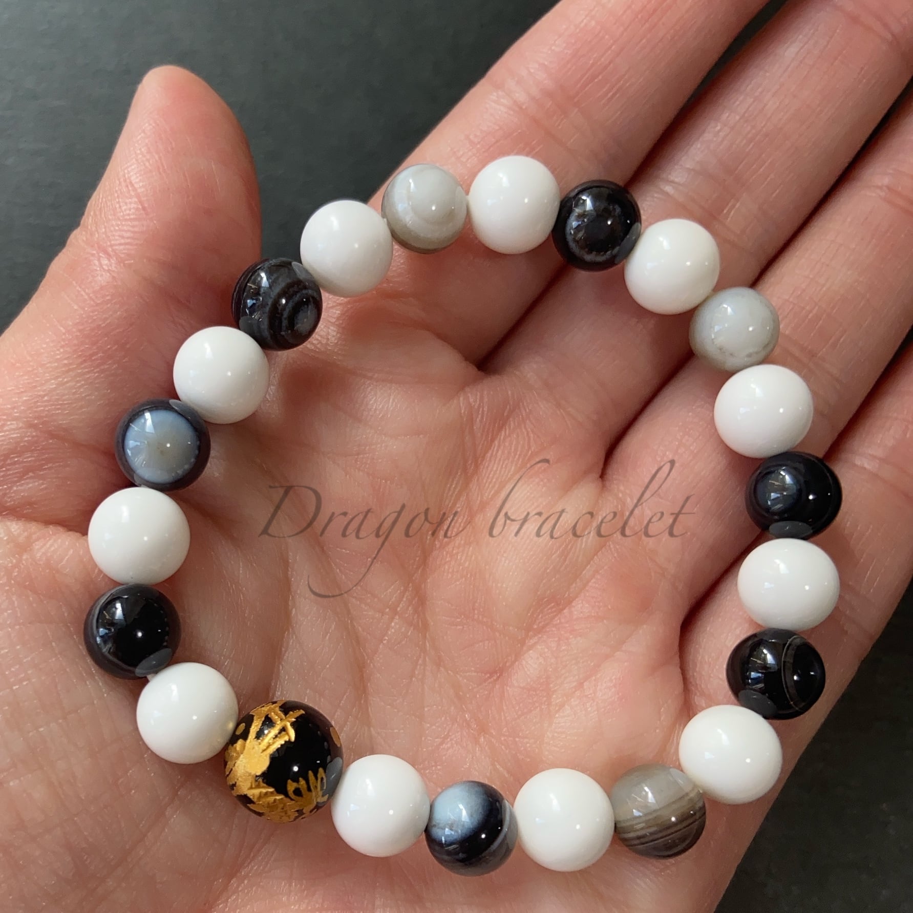 金龍が力強い守護と繁栄をもたらし、漆黒のオニキスが心を安定させます。