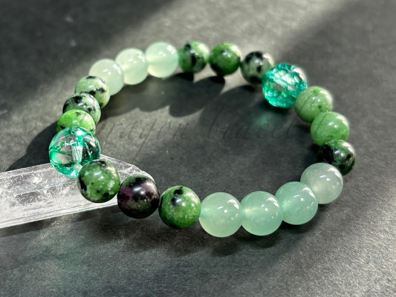 感情の解放 恋愛成就 エネルギー浄化 10mmクラック水晶 8mmルビーインゾイサイト、グリーンクォーツァイト