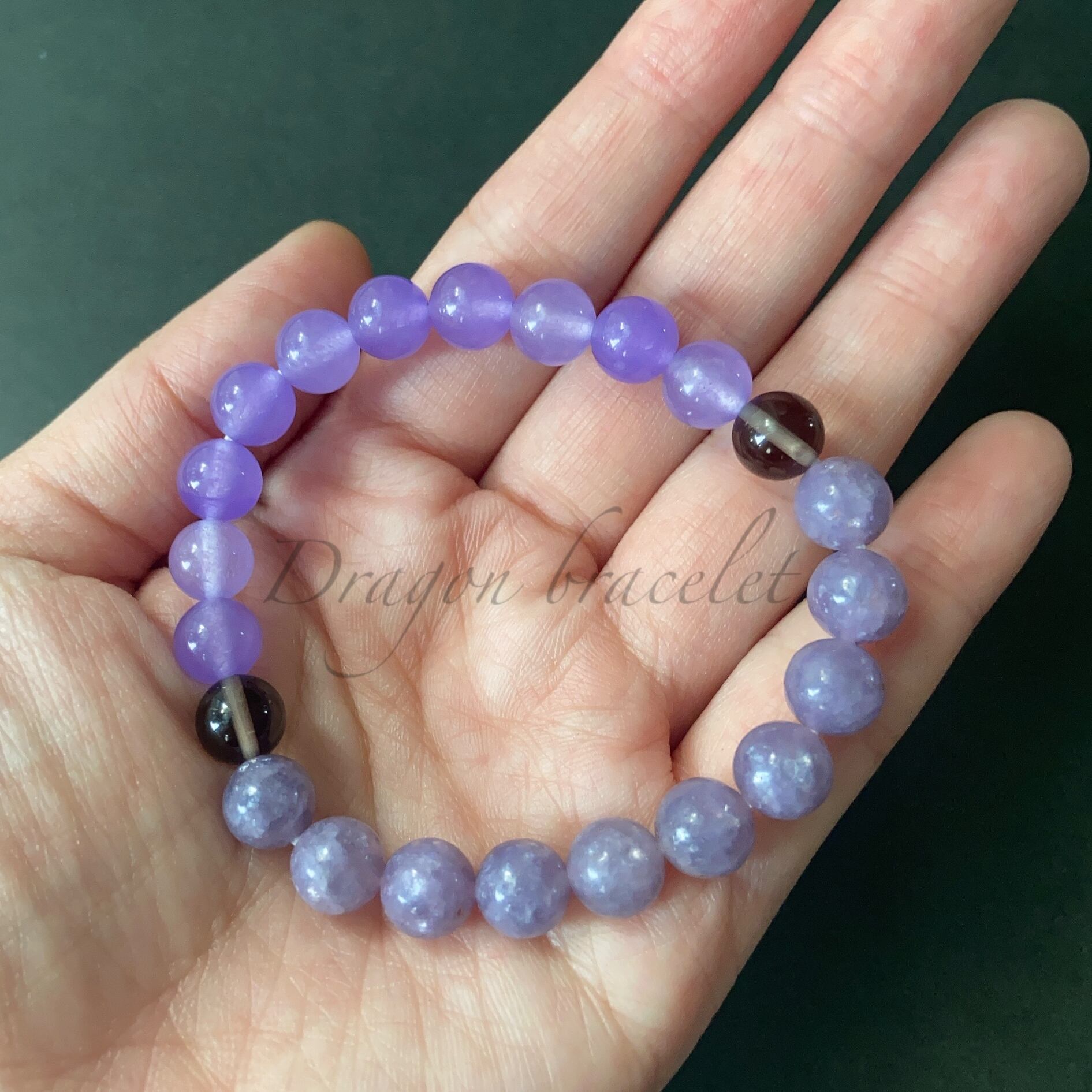 心を静め、穏やかな強さを宿す(送料無料)レピドライト×紫ジェード×スモーキークォーツ