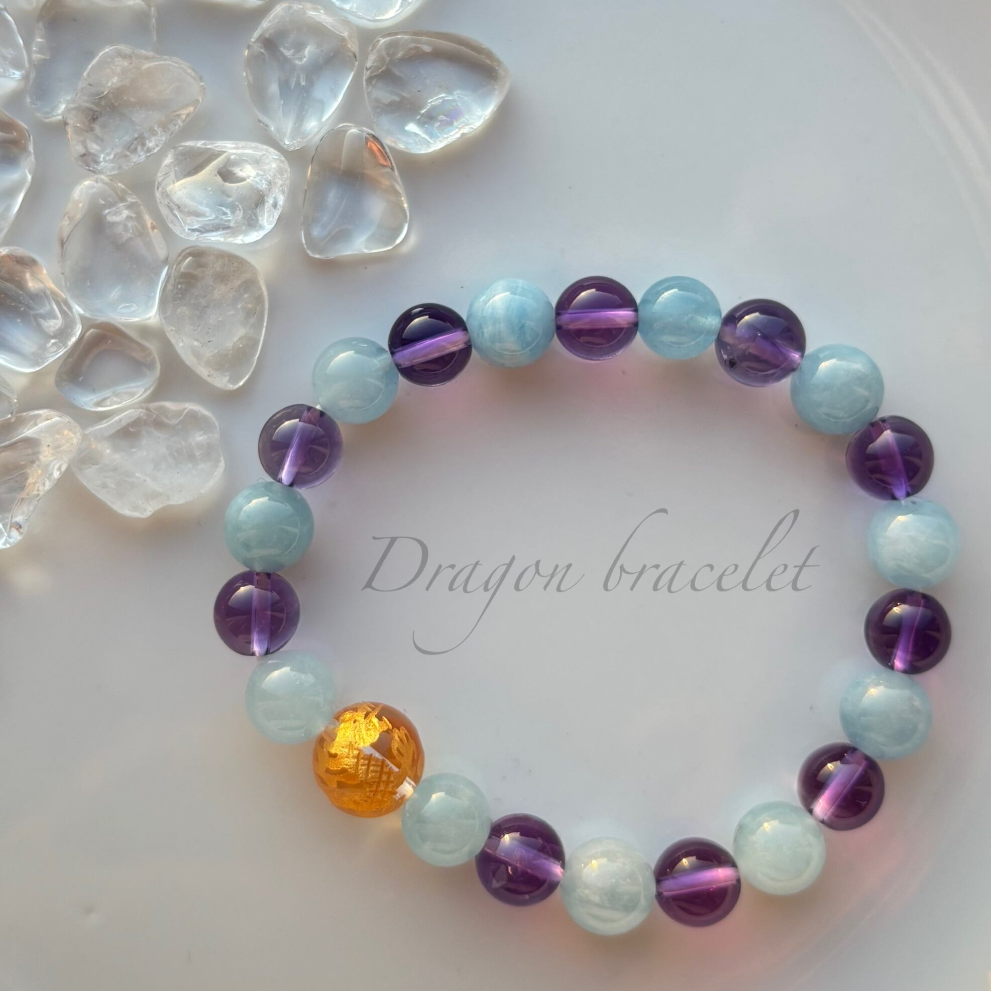 癒しと直感を与え、幸運を呼び込むお守り(送料無料)金龍×水晶×アクアマリン×アメジスト